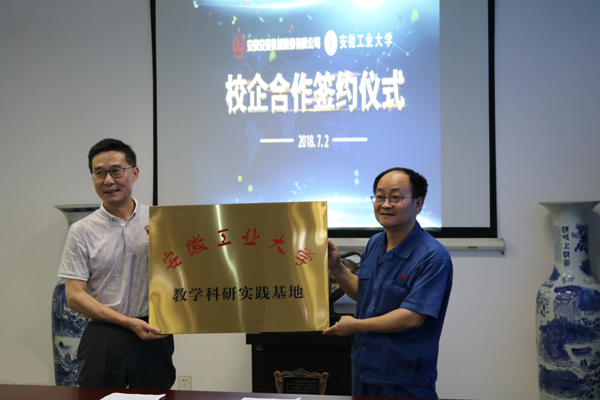 2018年7月2日上午,安徽安簧機械股份有限公司與安徽工業(yè)大學在股份公司三樓舉行了校企合作簽約授牌儀式。公司副總經(jīng)理兼總工黃昌文、副總經(jīng)理方軍,安徽工業(yè)大學機械工程學院黨委書記徐柳根,副院長汪永明等參加了儀式。